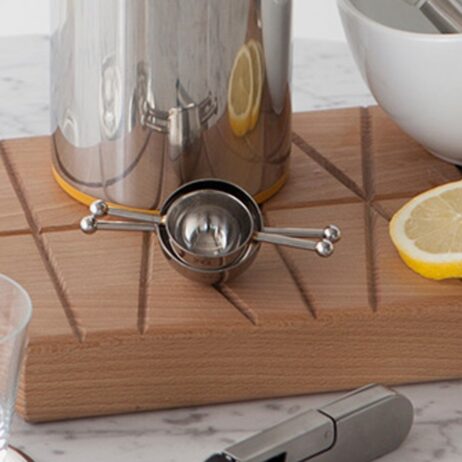 Disse vippemål i poleret rustfrit stål sikrer præcis måling af væsker og pulver i størrelserne 2 cl og 3 cl. Den glatte, reflekterende overflade vidner om høj kvalitet og solidt håndværk, mens de lange, lige håndtag med kugleformede ender giver et sikkert og behageligt greb. Vippefunktionen gør det nemt at dosere hurtigt og uden spild, hvilket effektiviserer arbejdet både i køkkenet og i baren. De kompakte mål gør dem lette at opbevare, uden at gå på kompromis med funktionaliteten.