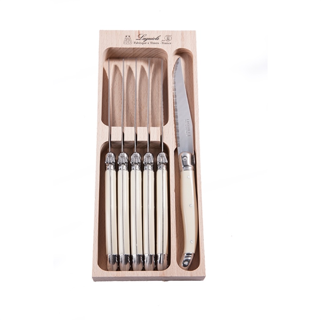 6 stk. Laguiole Debutant steakknive i trækasse – Ivory
