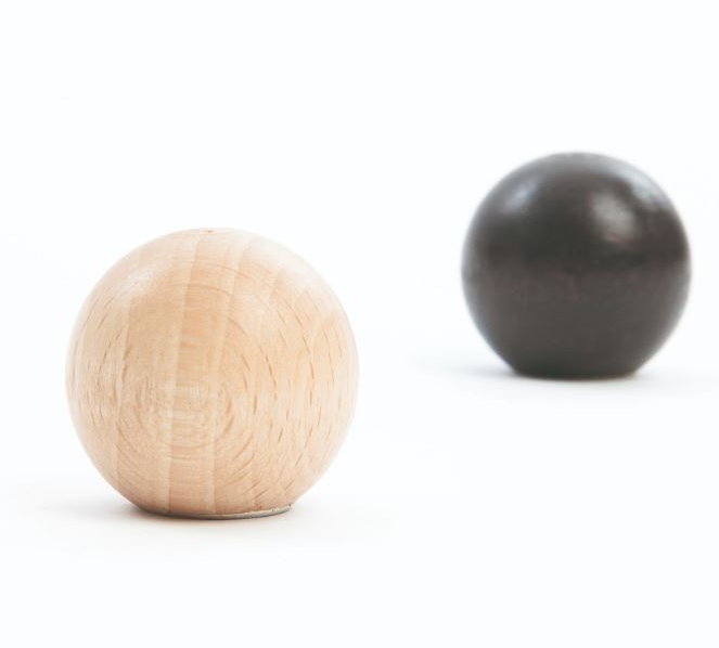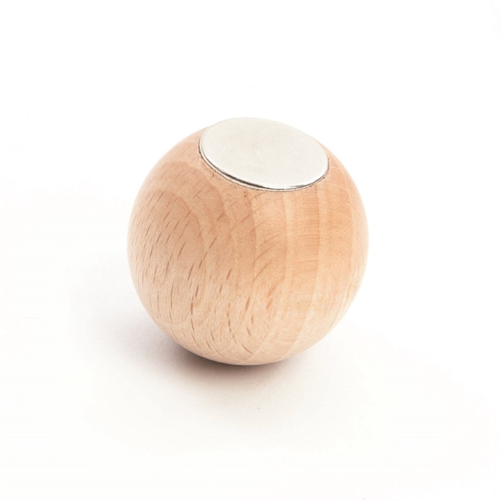 Kuglen er lavet i bøgetræ.