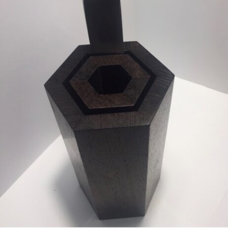 Denne sekskantede knivblok i Wenge træ er en stilfuld og pladsbesparende løsning til opbevaring af køkkenknive. Fremstillet af det robuste og tætte Wenge træ, som modstår fugt og ridser, har blokken en smuk, mørkebrun farve med tydelige årer, der giver et naturligt og eksklusivt udtryk. Med en højde på cirka 20 cm inklusiv bund passer den perfekt på køkkenbordet og kan rumme både kokkeknive og mindre knive sikkert og overskueligt. Den modulære konstruktion med sekskantede rum gør det muligt at adskille blokken for nem rengøring, hvilket sikrer optimal hygiejne og beskytter knivbladene mod unødigt slid.