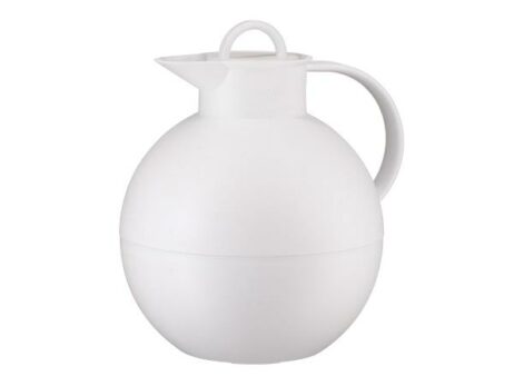 Den karakteristiske kugleform i frost hvid kombinerer æstetik og funktionalitet på fremragende vis, hvor den isolerende dobbeltvæggede AlfiDur-indsats i hærdet vakuumglas sikrer varme i op til 12 timer og kulde i op til 24 timer. Med 0,94 liters kapacitet er den kompakt til nem opbevaring og transport, samtidig med at den rummer flere kopper, ideel til både private kaffepauser og professionelle serveringssituationer. Den ergonomiske hank giver et behageligt og sikkert greb, mens skruelåget med løkke sikrer nem påfyldning og servering uden spild. Tysk håndværk og slidstærkt materiale sikrer lang holdbarhed, hvor den frost hvide overflade modstår pletter og ridser og bevarer sit tidløse udtryk.
