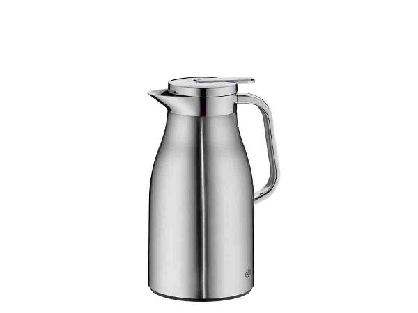 Alfi Skyline kombinerer cool stil med høj funktionalitet i køkkenet og på kaffebordet. Termokande i rustfrit stål i høj kvalitet. Dobbeltvægget AlfiDur-indsats i isolerende og hærdet vakuum-glas. Holder varmt i op til 12 timer og koldt i op til 24 timer. AromaSafe-princippet bevarer kaffens runde smag. Unikt og praktisk hældesystem. Kan betjenes med én hånd. Ergonomisk, forkromet metalhåndtag. Fri for BPA. Designet af PEARL CREATIVE.