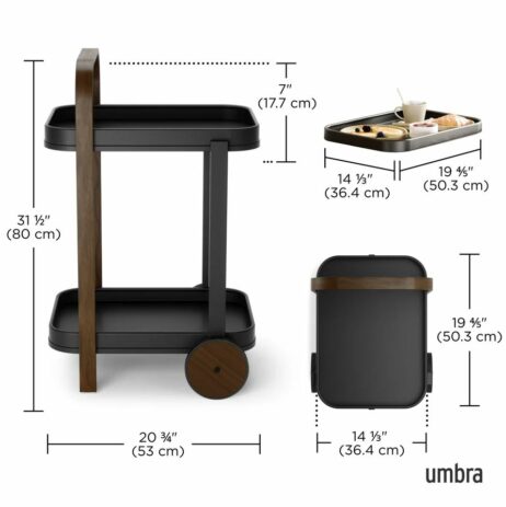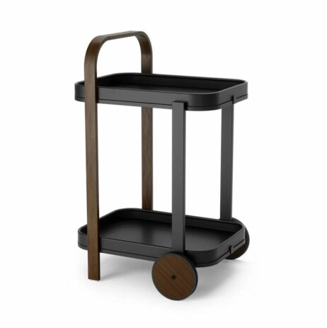 Vognen er designet med gummibelagte hjul, så du nemt kan flytte den rundt, uden at bekymre dig om ridser på gulvet. Øverste bakke kan let fjernes og anvendes som serveringsbakke til gæster eller snacks – perfekt til hyggelige stunder.
