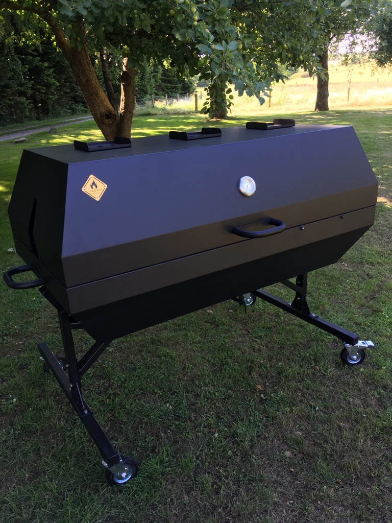 Dette er den kraftige model på hjul og stabilt understel. Grillen er udført i 2mm. plade (hvor der normalt anvendes 1,0 eller 1,2mm)