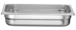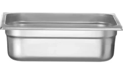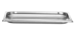 En gastrobakke 1/2 GN, mange varianter, er designet til at opfylde kravene i professionelle køkkener med sin robuste konstruktion i høj kvalitets rustfrit stål. Den rektangulære form med afrundede hjørner og en poleret, blank overflade sikrer både et hygiejnisk og tidløst udseende, der er let at rengøre. Med standardmålene 32,5 x 26,5 cm passer den perfekt til modulbaserede køkkenløsninger og fås i flere dybder, hvilket giver fleksibilitet til opbevaring, tilberedning og servering. Den udvidede kantflange gør det nemt at placere og sikre bakken i ovne, varmeskabe og stikvogne, hvilket optimerer arbejdsgangen i travle køkkener.
