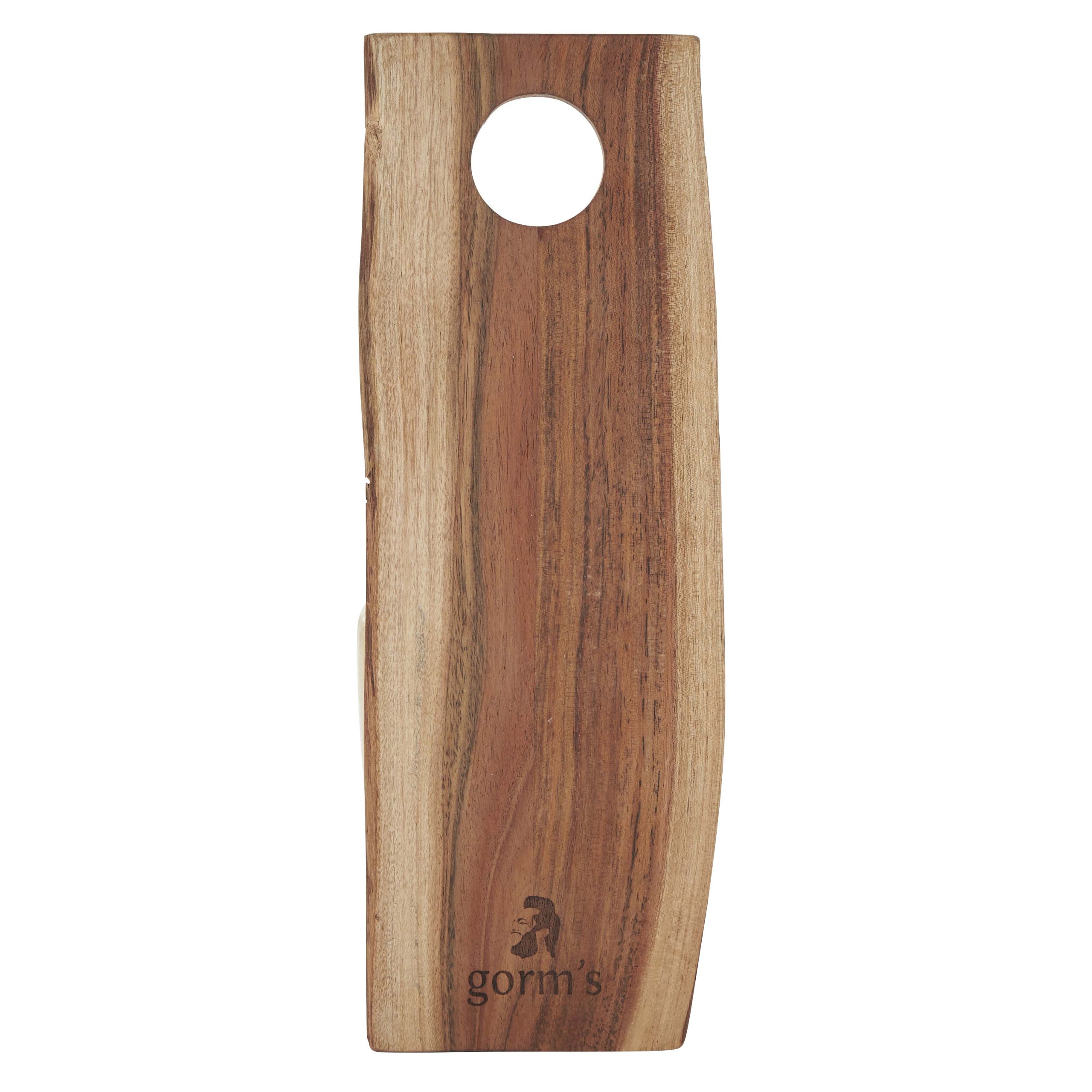Skærebræt fra Gorms i acacia træ. Brættet har bløde former og en lille kant, som sørger for, at fx oliven ikke triller af.