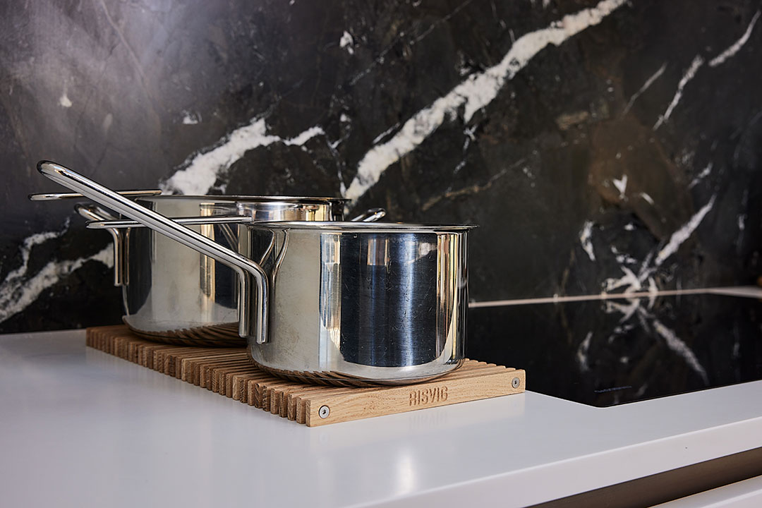 Den modulopbyggede konstruktion med to sammensatte sektioner sikrer stabilitet og fleksibilitet, mens den lette vægt gør den nem at håndtere og opbevare. Materialet er robust og modstandsdygtigt overfor slid og varme, hvilket sikrer lang levetid ved daglig brug i travle køkkener. Det stilrene, tidløse design uden påtrængende branding passer til designbevidste hjem og professionelle køkkener, hvor funktionalitet og æstetik går hånd i hånd. Risten er ideel til madlavning, buffetservering og elegant borddækning, hvor den beskytter overflader og løfter køkkenets visuelle udtryk.