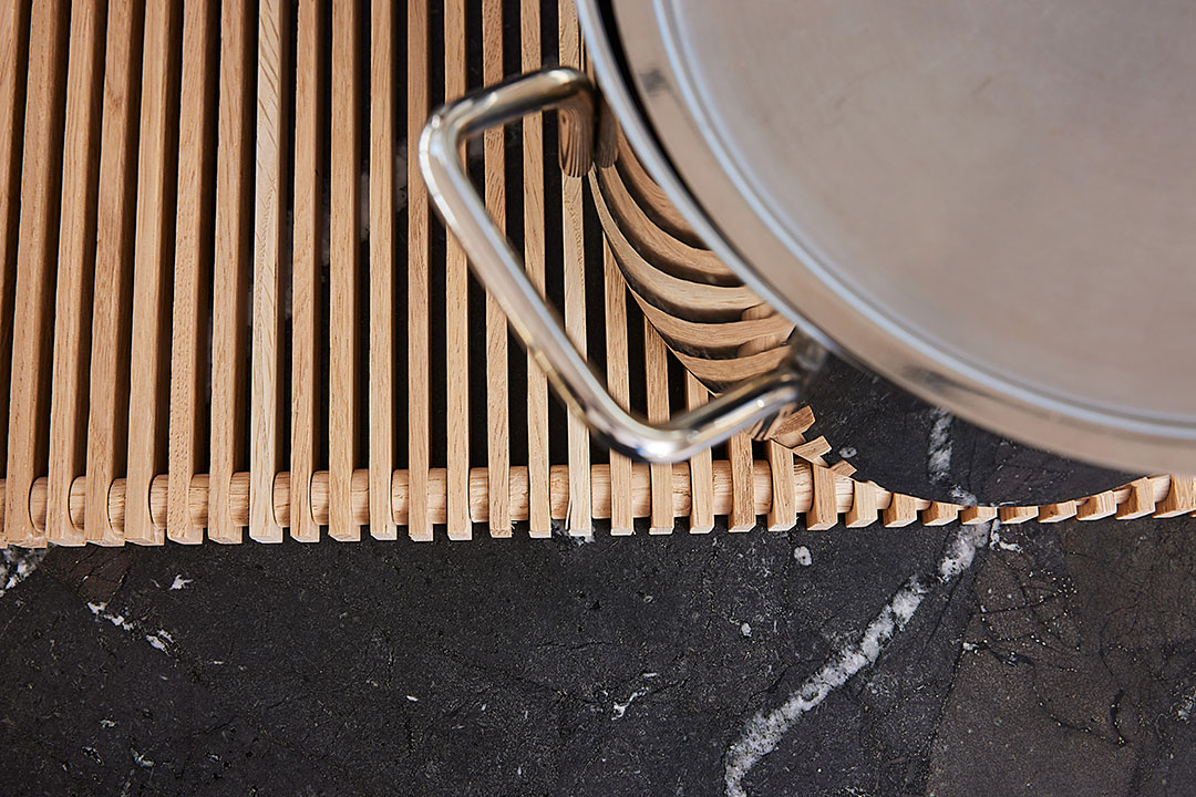 Funktionel og elegant gryderist i ubehandlet eg til beskyttelse af varme overflader