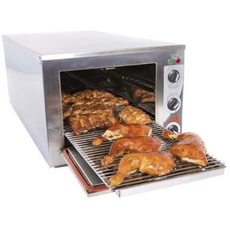 Røgovnen leveres komplet med drypbakke, røg bakke, 1 kg røgsmuld, fiskekrydderiprøve samt en opskriftbog, der gør det nemt at komme i gang med røgningsprocessen. Den elektriske drift og robuste konstruktion sikrer langvarig brug i både private køkkener og mindre professionelle miljøer som caféer og restauranter. De rustfri stålriste tåler gentagen brug uden at miste funktion, og den kompakte størrelse kombineret med let betjening gør ovnen ideel til både daglig brug og særlige lejligheder, hvor smag og kvalitet skal i højsædet.