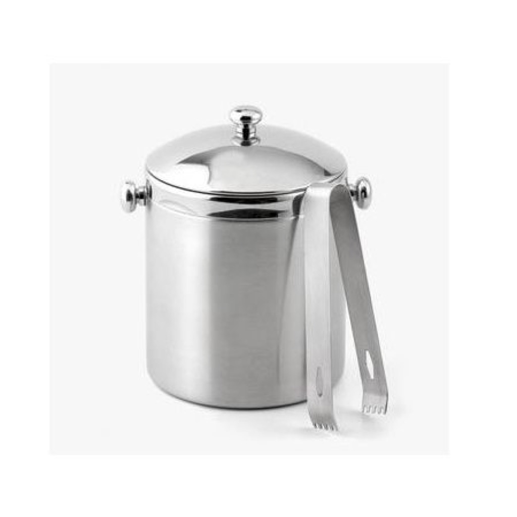 Spand til is, med tilhørende tang.