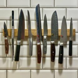 Der sidder flere rækker kraftige Neodyminum magneter i skinnen, så dine knive bliver hængende uanset størrelse og vægt. Desuden er skinnen naturligvis magnetisk i hele længden så du kan fx. ha´ ca. 7-8 knive hængende på 40cm.