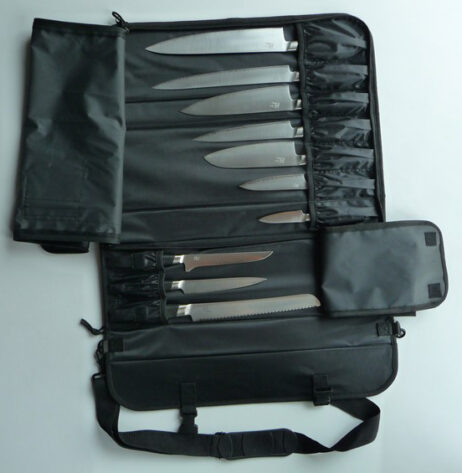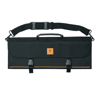 Denne knivtaske fra Yaxell er ideel til professionelle kokke, da den har plads til op til 10 knive. Fremstillet i holdbart nylon, kan tasken nemt foldes ud for at give dig hurtig adgang til dit knivsæt. Den er udstyret med clipsfunktion og to spænder for ekstra sikkerhed, samt en praktisk skulderrem for nem transport.