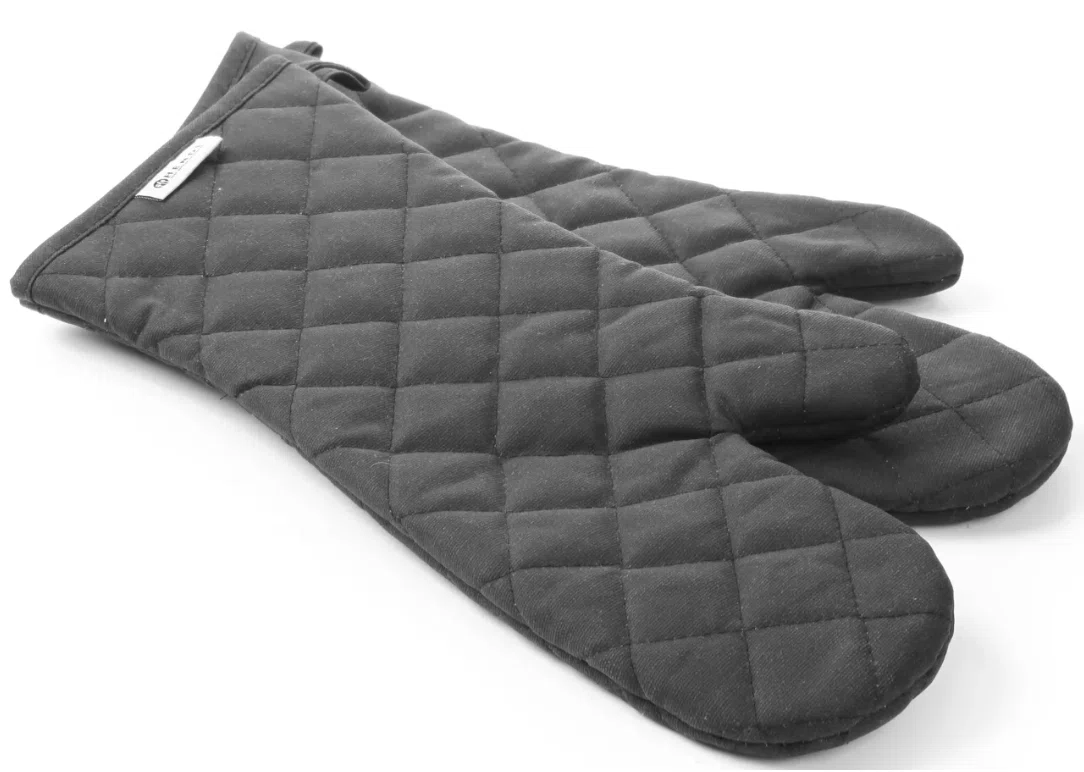 Den lange manchet gør det nemt at arbejde sikkert ved dybe ovne eller varme maskiner, mens den fleksible pasform giver god bevægelsesfrihed og et stabilt greb om køkkenudstyret.