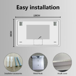Spejlet er udstyret med en effektiv antidug-funktion og IP44-klassificeret vandtæt LED-belysning, som gør det ideelt til vådrum og fugtige miljøer. Den anti-korrosionsbehandlede overflade beskytter mod skader fra damp, og den brudsikre behandling øger modstanden mod slag og ridser. Betjeningen er enkel med tilslutning direkte til lampeudtag eller stikkontakt, og monteringen sker nemt og sikkert med det medfølgende beslag, plugs og skruer. Den energivenlige LED-driver sikrer stabil og effektiv belysning med lavt strømforbrug, hvilket gør spejlet både økonomisk og miljøvenligt i brug.