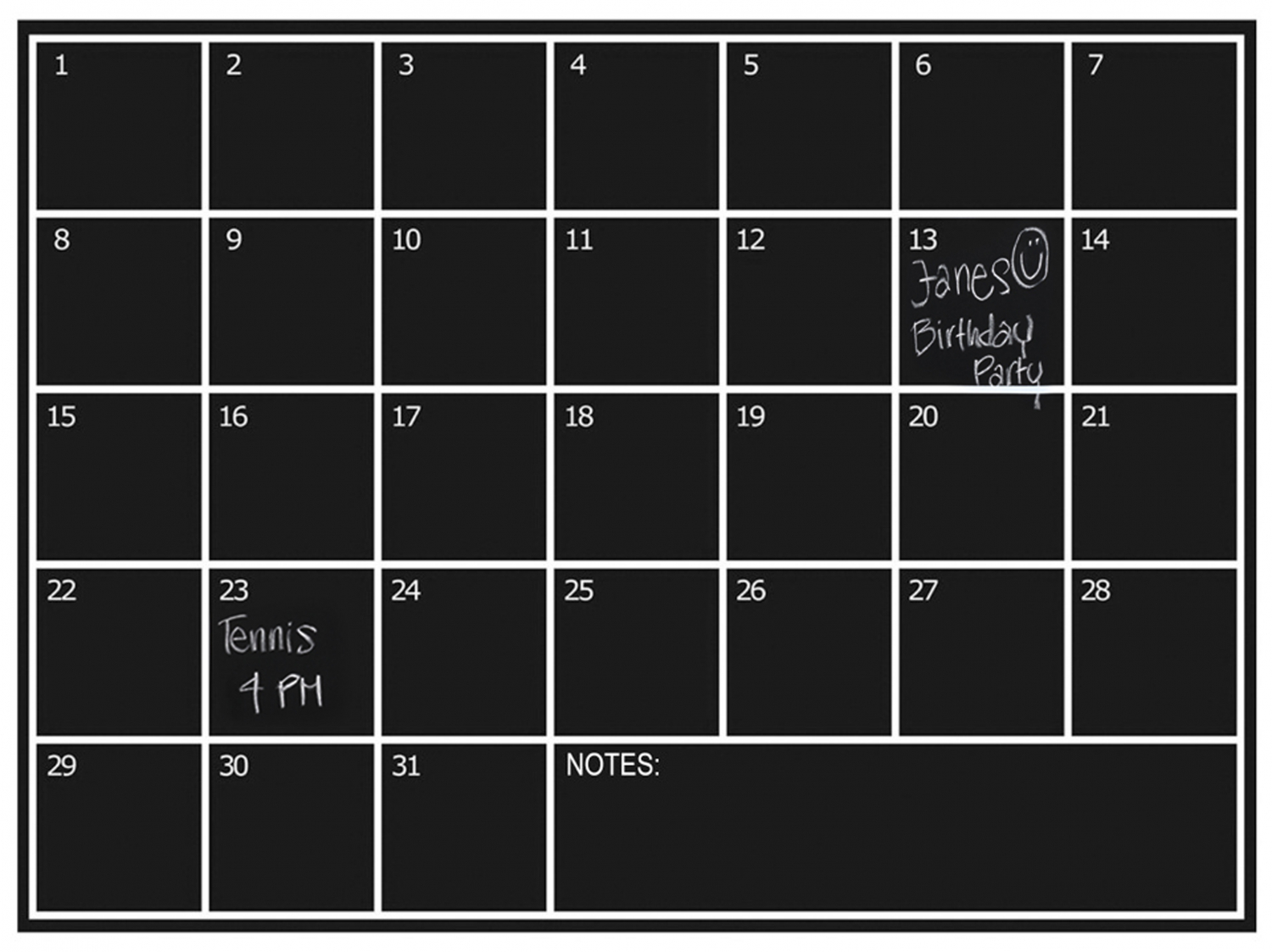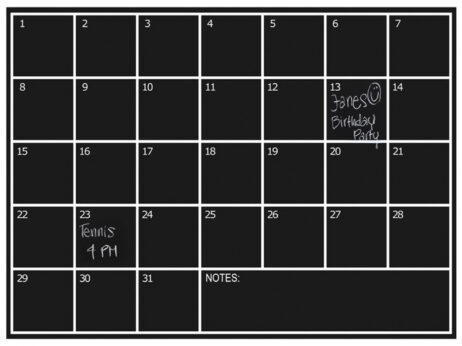 Kridt sticker månedsplanner 100 x 70 cm. Gør det nemt at planlægge månedens aktiviteter. Kan klæbes på alle rene og glatte overflader, og fjernes igen. Skriv med kridt, rengør med en fugtig klud. Incl. 1 stk. kridt.