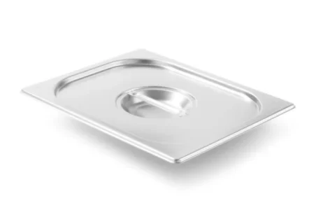 Låget er fremstillet i rustfrit stål 18/10 med en blankpoleret, sølvfarvet overflade, der kombinerer holdbarhed og et professionelt udtryk. De glatte, afrundede kanter sikrer nem rengøring og øget sikkerhed, mens den let forhøjede kant sikrer en tæt pasform til standard gastrobakker som Hendi-modeller. Låget er kompakt og nemt at håndtere, hvilket gør det ideelt til både professionelle køkkener og ambitiøse hobbykokke. Materialets høje temperaturbestandighed fra -40° til 300° C gør låget velegnet til brug i konvektionsovne, køleskabe og vandbade, hvor det beskytter madens friskhed og kvalitet under tilberedning og opbevaring.