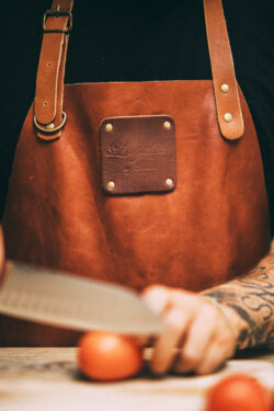 Opgrader din madlavning med dette eksklusive forklæde i ægte, fuldnarvet bøffellæder – kendt for sin uovertrufne holdbarhed, smidighed og elegante finish. Det bløde cognacfarvede læder former sig naturligt efter kroppen og giver en komfortabel pasform, uanset om du står ved grillen eller i køkkenet i timevis.