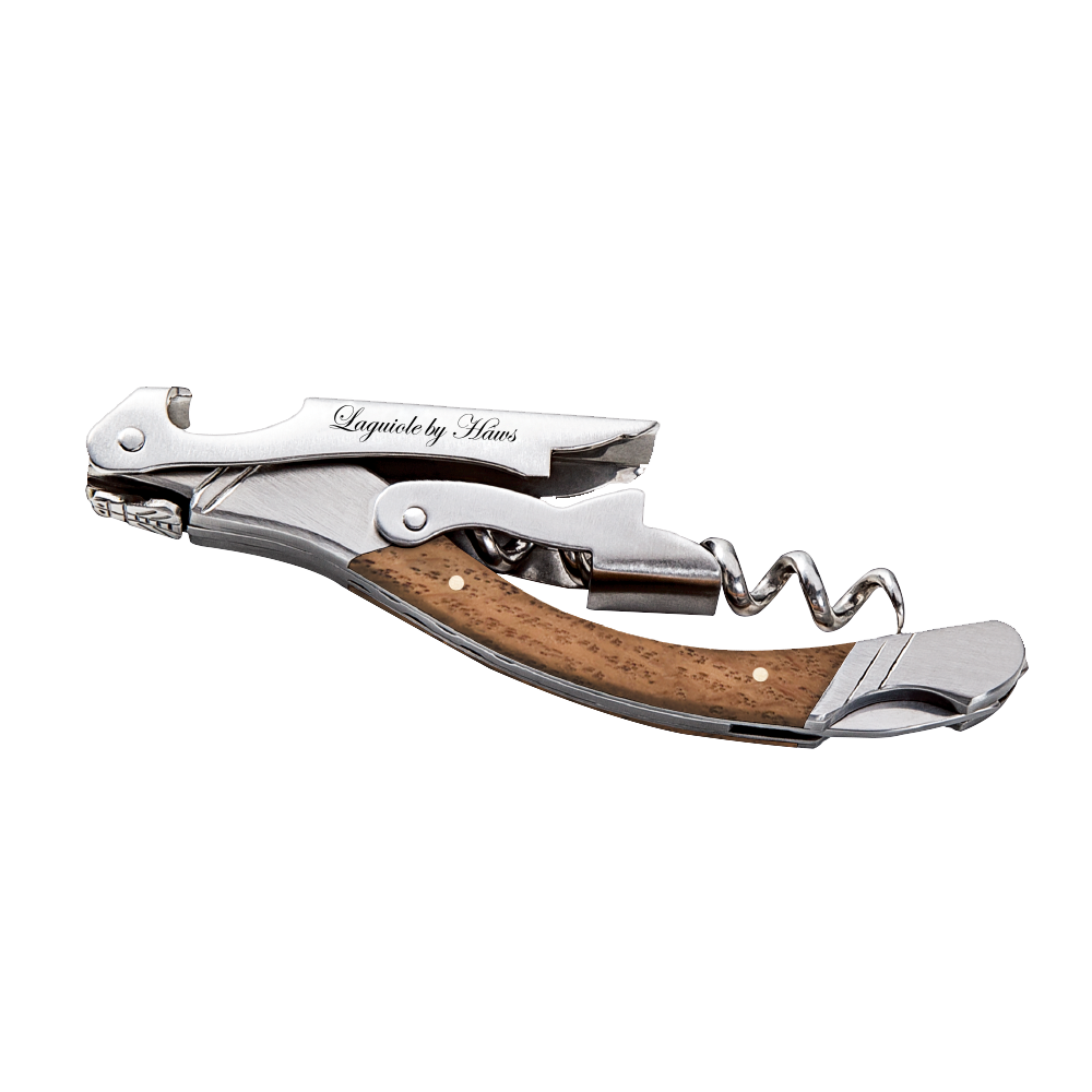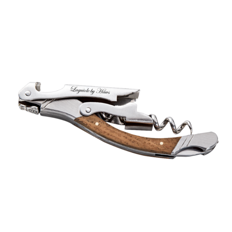 Denne elegante tjenerproptrækker er fremstillet i smukt, mørkt egetræ og børstet rustfrit stål, som ikke blot giver et eksklusivt udtryk, men også sikrer et sikkert og behageligt greb. Det klassiske Laguiole-design stammer fra 1800-tallet og udspringer af den franske landsby Laguiole – kendt for sit tidløse håndværk og ikoniske formsprog.