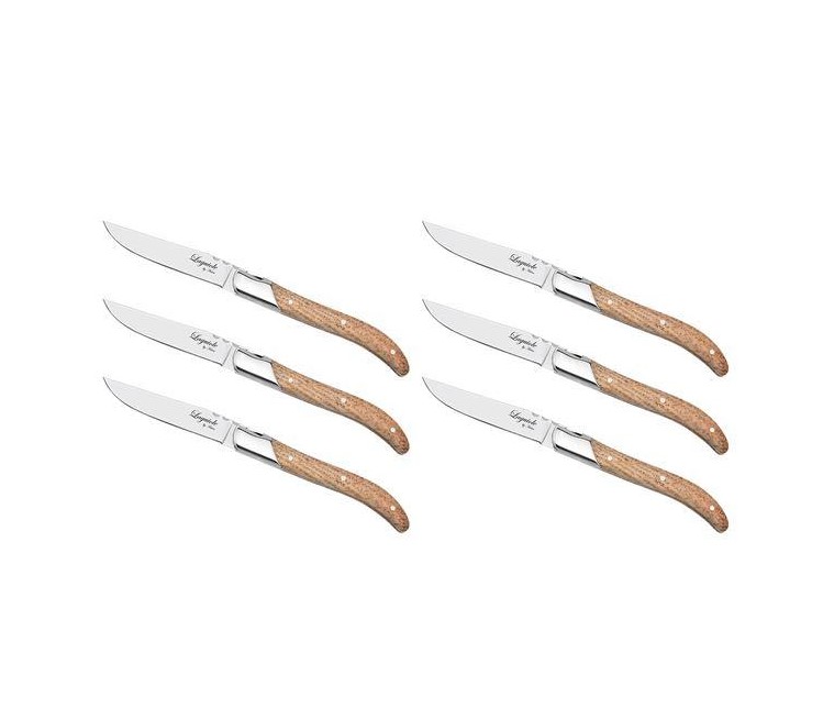Steak knivene er lavet af 420 rustfrit stål og mærket med et cikade logo. Sættet består af 6 steak knive med håndtag af oak en sort trææske. Det er muligt at få matchende steak gafler til sættet.