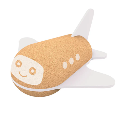 Dette legetøjsfly i økologiske materialer til børn er fremstillet af bæredygtig kork i en varm beige nuance, der sikrer en blød og naturlig tekstur, kombineret med minimalistiske hvide vinger og hale. Den lette og afrundede form gør det behageligt og sikkert for små hænder at holde og lege med, samtidig med at flyets kompakte størrelse gør det nemt at håndtere både indendørs og udendørs. Den glatte overflade uden skarpe kanter understøtter en tryg leg, mens det venlige ansigt på fronten tilføjer et charmerende, indbydende udtryk, som stimulerer børns fantasi og kreativitet.