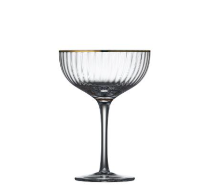 Smukt cocktailglas med bløde, rundede former. Det elegante, riflede design med en fin guldkant giver glasset et flot vintagelook, der samtidig afspejler tidens trends. Server festlige cocktails, drinks eller desserter i glasset og lad de fine facetter reflektere lyset og glassets indhold på smukkeste vis.