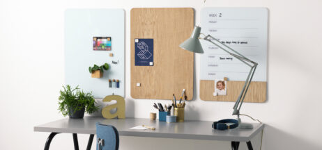 Tavlen kan hænges vandret eller lodret. Sæt ting på tavlen med Super Stærke magneter.