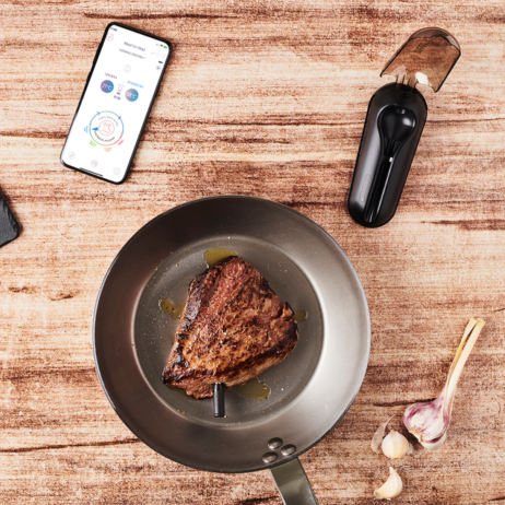100% trådløse madlavningstemperaturmåler! Nu kan du endelig være sammen med dine gæster alt imens maden – næsten – passer sig selv.