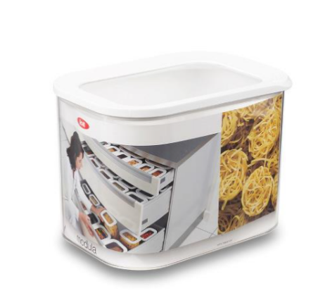 Mepal Modula modulboks hjælper dig med at få overblik i dit køkken! Det gennemsigtige låg giver overblik, når boksene placeres i køkkenskuffen. Modula boksen modtog i 2007 den prestigefyldte DESIGN+ pris. Prisen gives for godt design, mens plus’et gives, når produktet har ekstraordinær funktionel værdi. Mål: 22,5 x 16 x 16,5 cm. Boksen er fremstillet af SAN-plast, som er robust og modstandsdygtig overfor ridser. Velegnet til opvaskemaskine men ikke til mikroovn og fryser.