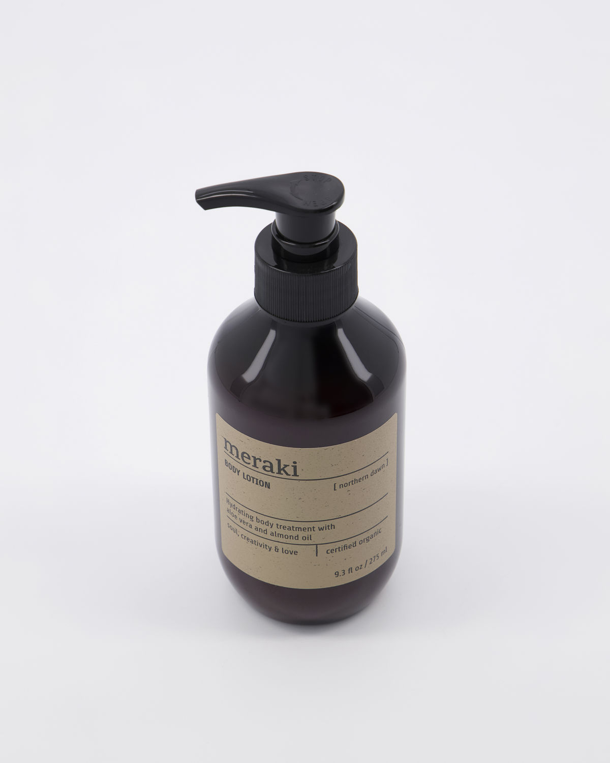 Lad din krop fugte med denne, med denne økologisk certificeret bodylotion fra Meraki, som indeholder økologisk aloe vera og mandelolie.