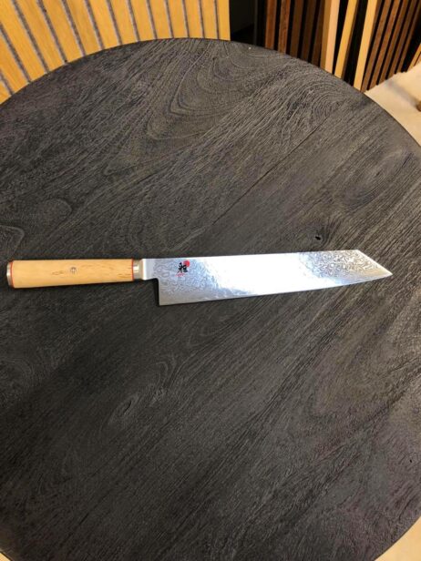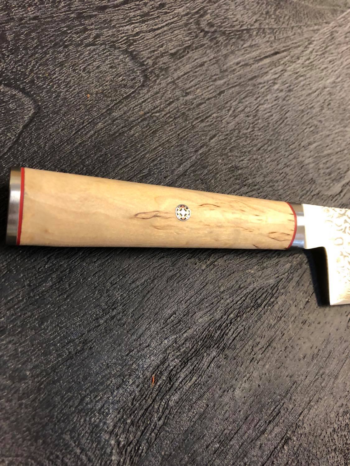 Med sin ideelle størrelse på 24 cm balancerer kniven præcision og kapacitet, hvilket gør den nem at håndtere og opbevare i både private og professionelle køkkener. Den slidstærke konstruktion sikrer, at kniven bevarer sin skarphed med minimal vedligeholdelse, mens det naturlige birketræshåndtag bidrager til både komfort og holdbarhed. Den sømløse overgang mellem blad og skaft fremmer hygiejne og robusthed, vigtigt ved hyppig brug. Det alsidige design gør kniven ideel til daglig madlavning, hvor præcision og effektivitet er afgørende, og dens elegante finish tilfører køkkenet et eksklusivt præg. Denne kniv er et uundværligt redskab, der løfter madlavningen til et professionelt niveau.