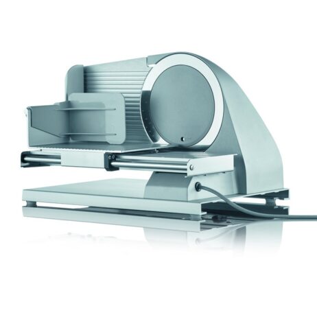 Denne pålægsmaskine kombinerer et kompakt, selvbærende design med en stor, glat klinge på 190 mm i rustfrit stål, der sikrer præcis og ensartet skæring af pålæg, ost, rugbrød og meget mere. Den børstede metalfinish giver et stilrent, professionelt udtryk, som passer perfekt i både private køkkener og professionelle miljøer. Med en motoreffekt på 185 watt og en justerbar skivetykkelse fra 0 til 15 mm kan du tilpasse skiverne efter behov, samtidig med at den solide konstruktion sikrer stabilitet under brug. Den aftagelige aluminiumholder og det udtrækkelige skærebræt øger funktionaliteten og gør rengøringen nem og effektiv.
