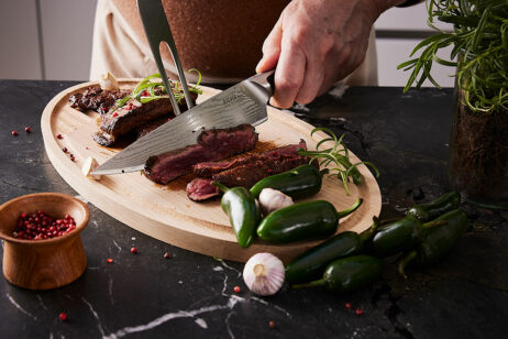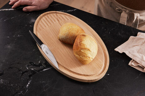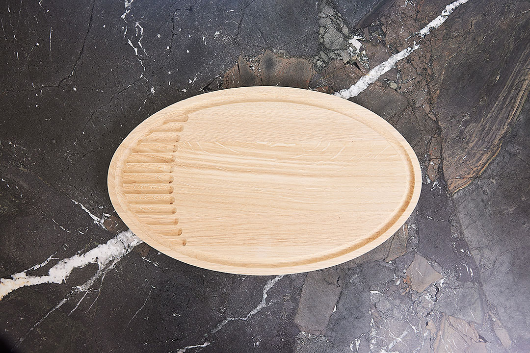 Den ekstra dybe rille i brættet, sørger for at den overskydende saft fra kødet net løber fra, uden at svine. Rillerne fungerer også som krummerist, når der skæres brød. Vendes brættet om, har den en helt flad side. Denne kan bruges til bla. Fisk og grøntsager, men fungere også perfekt som tapasbræt.