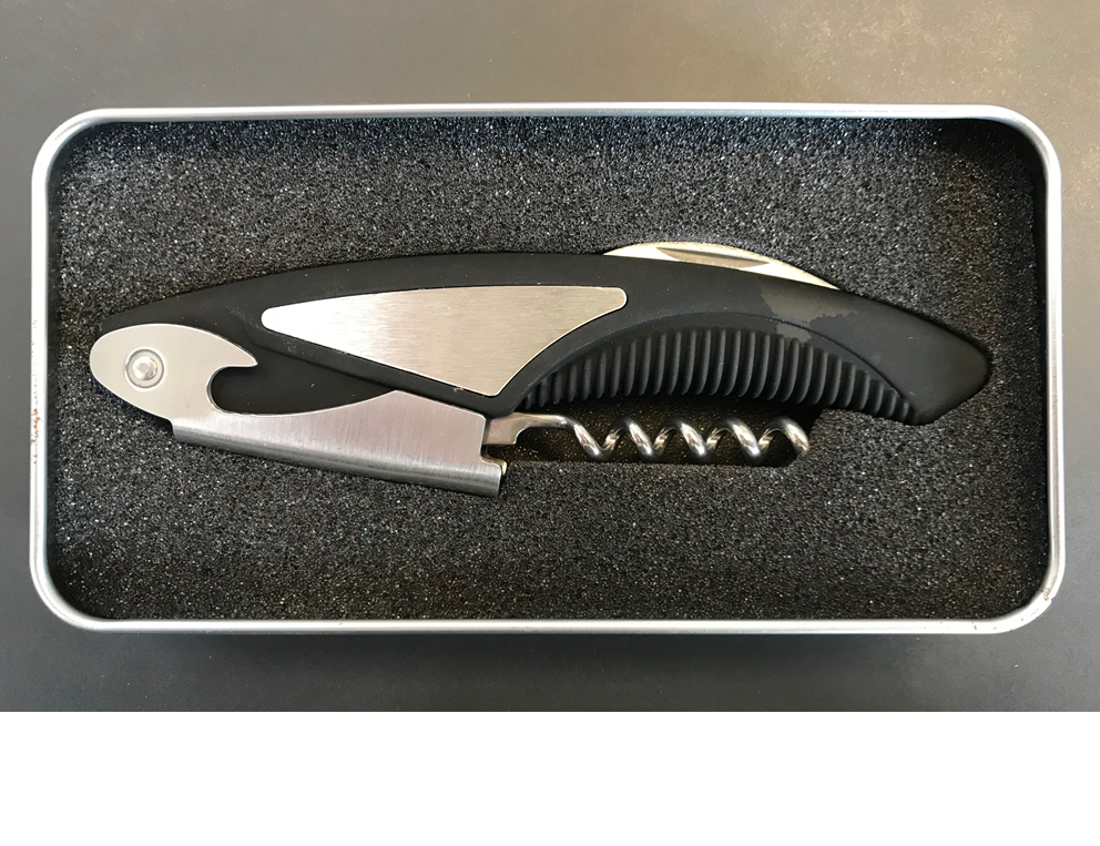 Proff. tjenerproptrækker, udført med ergonomisk silikone håndtag og i rustfri stål.