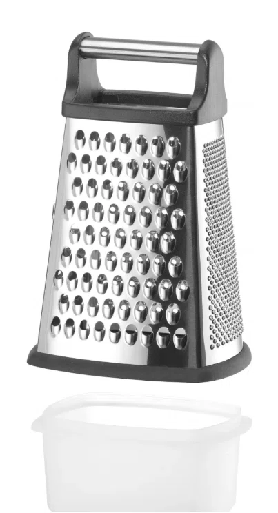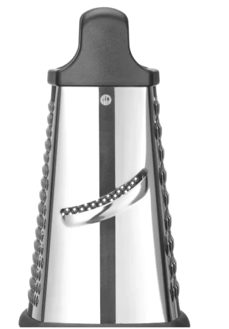 Rivejernet har en skridsikker bund og ergonomisk håndtag, der giver dig både støtte og sikkerhed under brug – samtidig med at både rivejernet og beholderen kan rengøres i opvaskemaskinen.
