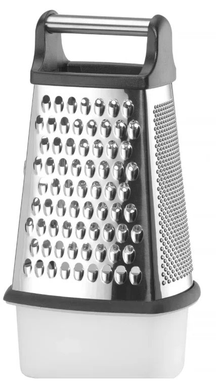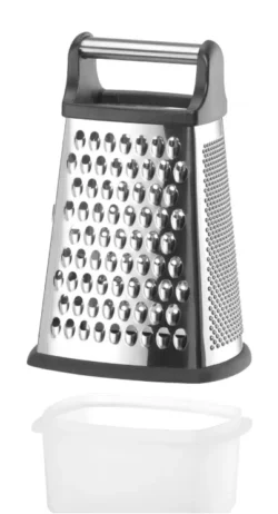Med fire forskellige overflader – fin, medium, grov og skiveskæring – kan du rive alt fra ost og grøntsager til citrus og chokolade med præcision og fleksibilitet.
