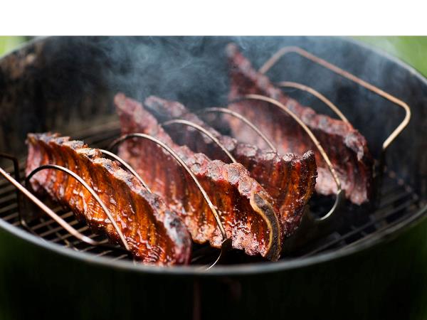 Spareribstativ til svinekoteletter og spareribs, der omdannes til en ristningskurv, når den vendes på hovedet. Hele stege kan transporteres sikkert i kurven. Med praktiske håndtag. Tåler opvaskemaskine.