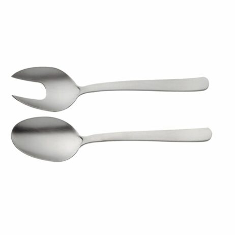 Denne bestikserie er lavet i et flot og enkelt design, hvor der er lagt vægt på funktionalitet. Denne serie er meget eftertragtet på grund af det flotte design, der fås til en attraktiv pris. Salatsættet er lavet i matbørstet rustfrit stål. Bemærk venligst:- Tåler maskinopvask