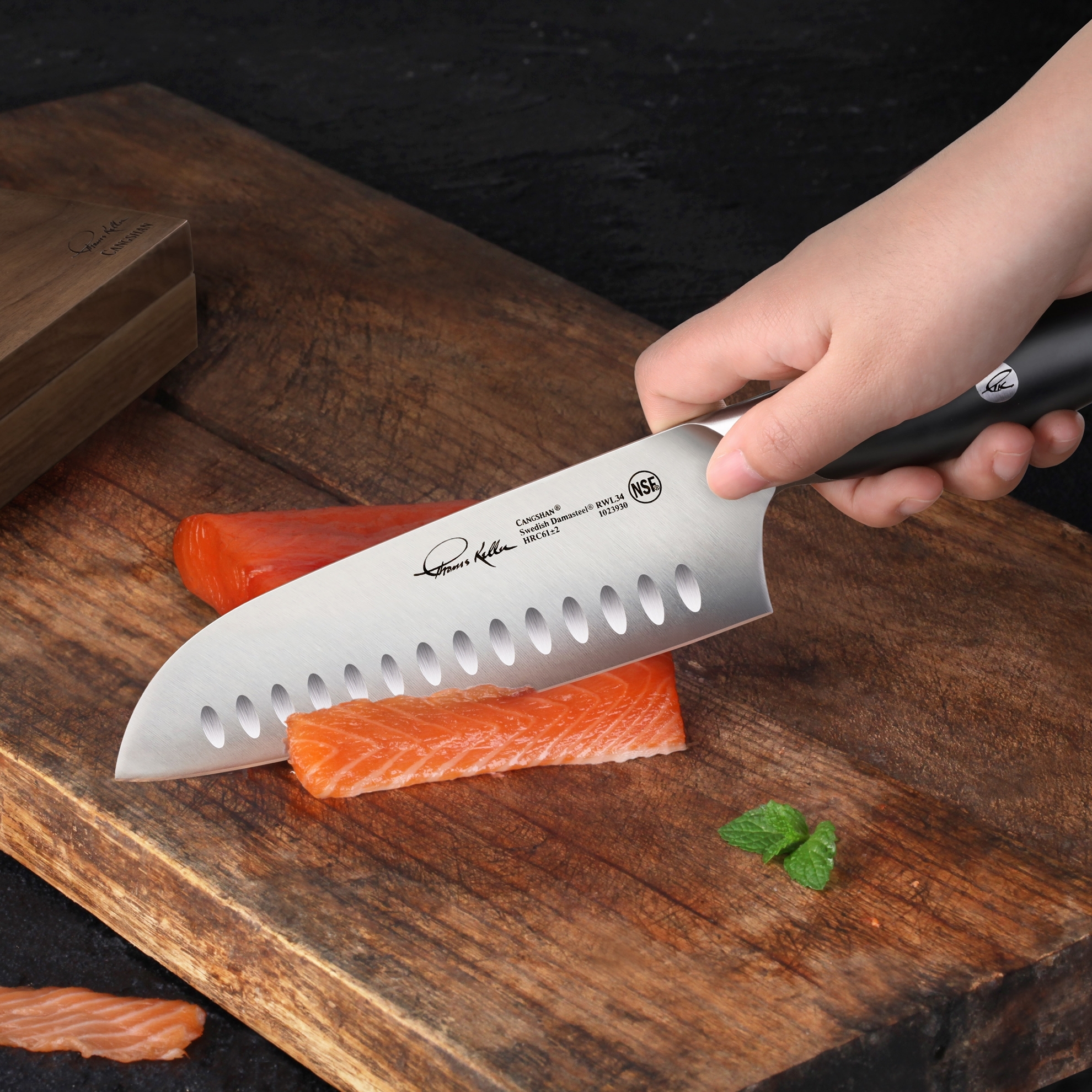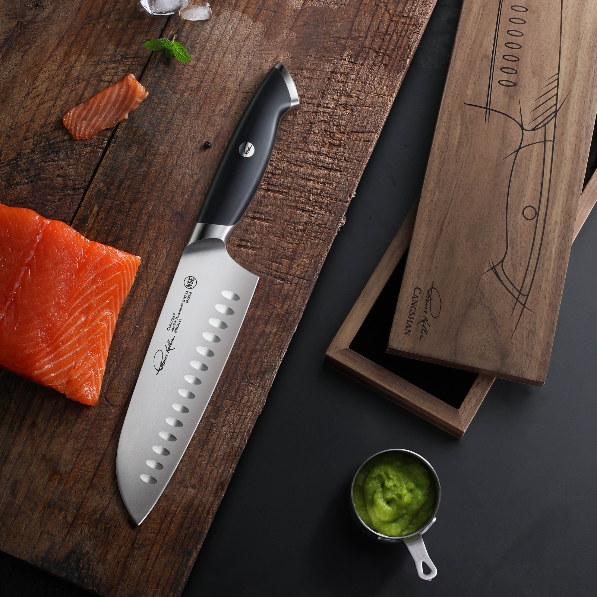 Santoku kniv 20 cm. af Svensk Damaskus stål – Cangshan Thomas Keller Signature Collection