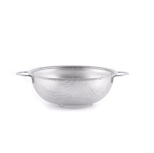 Denne sigte i rustfrit stål kombinerer holdbarhed og funktionalitet med et klassisk, elegant design. Med sin polerede overflade og buede, skålformede kurv sikrer den hurtig og effektiv afdrypning af alt fra grøntsager og pasta til ris og bær. To solide håndtag giver et sikkert og komfortabelt greb, også når sigten er fuld, og den opadgående kant sammen med den fine perforering sikrer styrke og optimal dræning uden tab af små ingredienser. Den fås i flere størrelser, herunder Ø285 mm og Ø315 mm, der er kompakte til opbevaring, men rummelige til større portioner. Ideel til både daglig madlavning og professionelle køkkener, hvor kvalitet og hygiejne prioriteres.