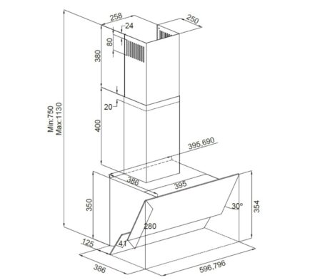 Kanaltilslutning: 150 Ø/mm