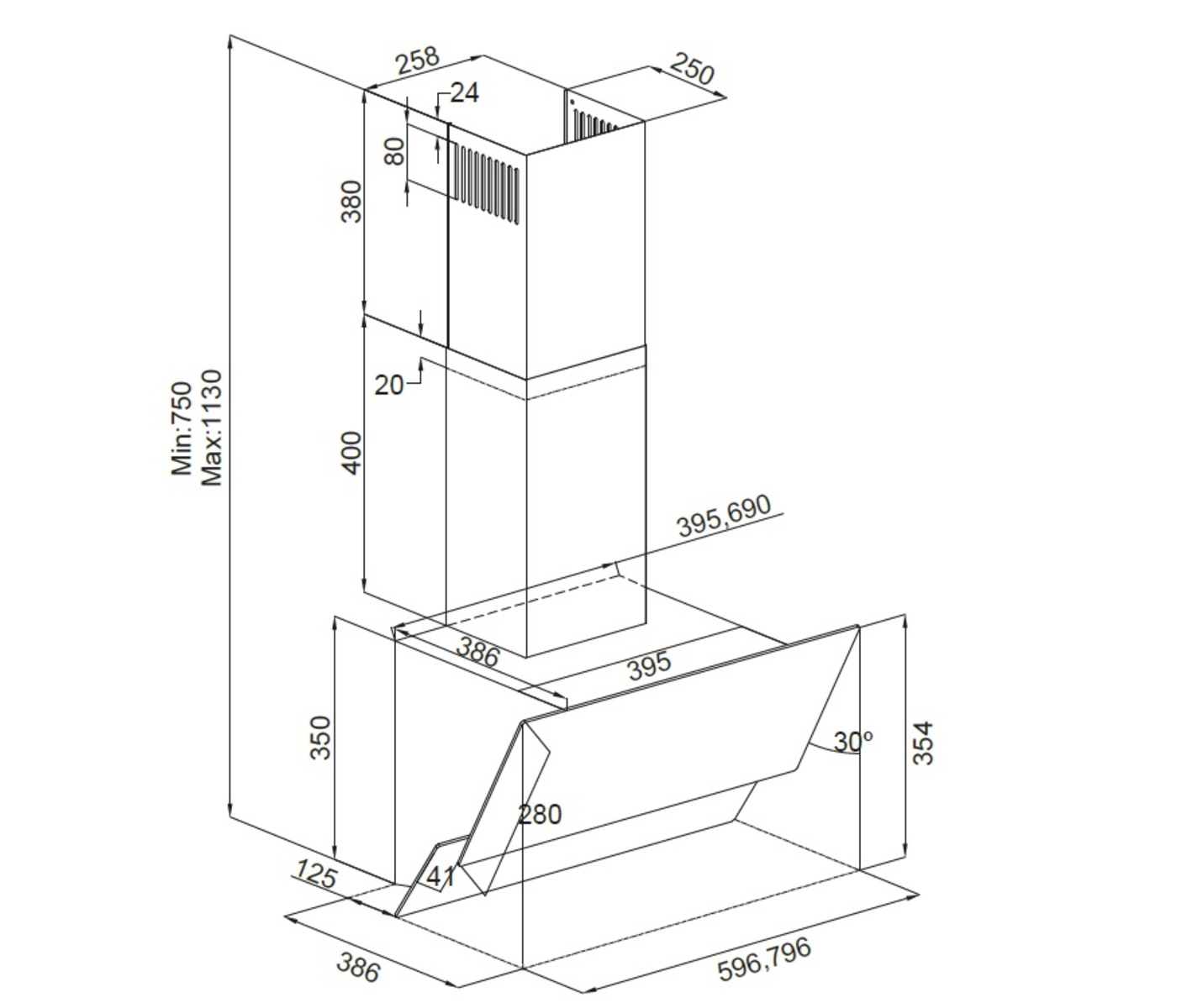 Dybde: 396mm