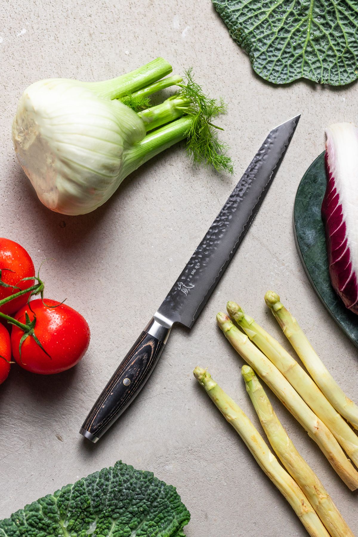 På selve klingen er der en kanji med Yaxell logoet.