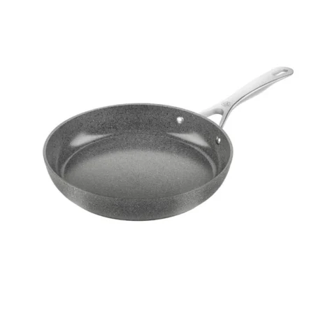 Det ergonomiske håndtag i rustfrit stål er udstyret med stay-cool funktion, så det forbliver behageligt at holde på under madlavningen. Den stilrene Stone Grey-finish giver panden et moderne udtryk, der passer naturligt ind i både klassiske og nutidige køkkener.