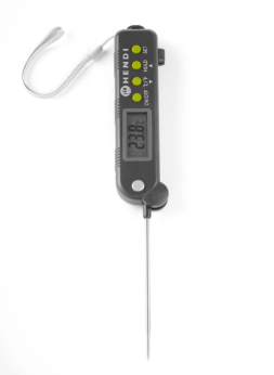 Dette termometer fra Hendi har en foldbar sonde og måler temperaturer fra -50 til +300°C. Med kompakte mål på 160x40x25 mm er det praktisk og nemt at opbevare, ideelt til præcis temperaturmåling i både køkken og andre omgivelser.
