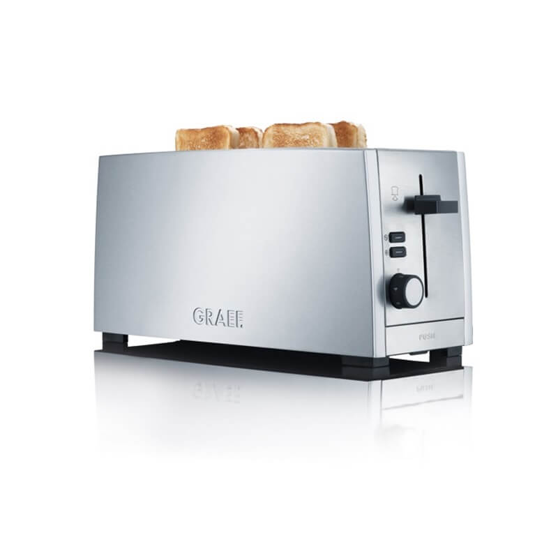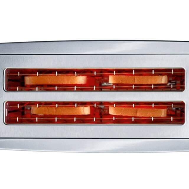Toaster til 4 brød i elegant aluminium og rustfrit stål med præcis ristning