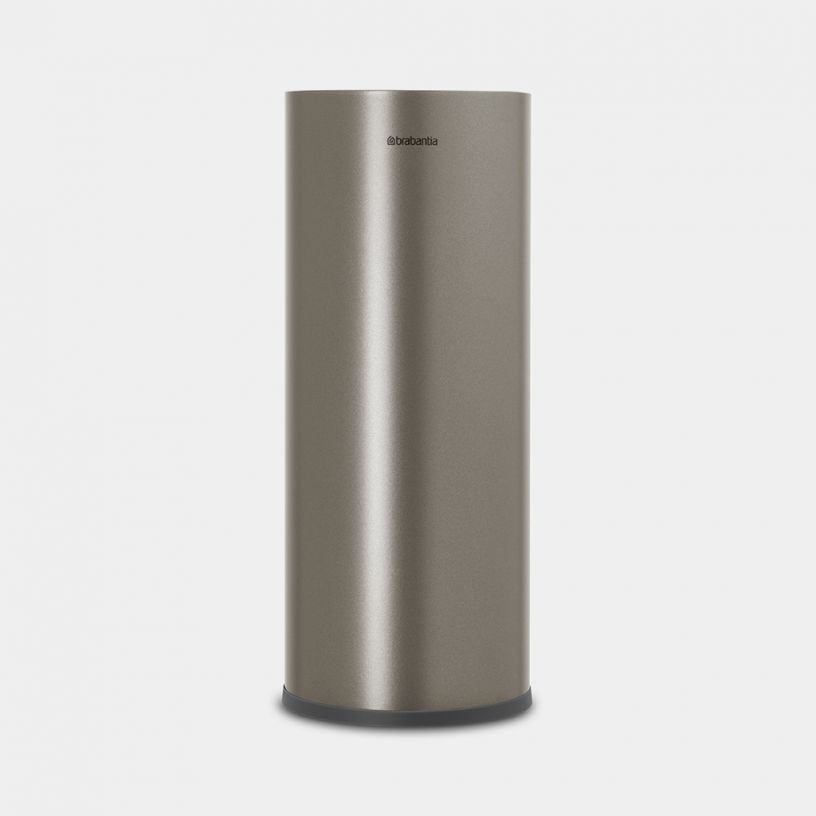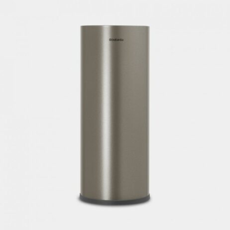 Den elegante toilet rulle dispenser platinum er designet til at kombinere funktionalitet med et minimalistisk udtryk, der passer perfekt ind i enhver moderne badeværelsesindretning. Fremstillet i korrosionsbestandige materialer med en mat, platinfarvet finish, sikrer den både holdbarhed og et raffineret look. Med plads til tre ekstra standard toiletruller i en lukket cylinderform beskytter den effektivt mod støv og fugt, hvilket gør den ideel til både private badeværelser og professionelle miljøer. Den kompakte højde og smalle diameter gør den velegnet til små rum, hvor den står stabilt på en skridsikker bund uden at ridse gulvet, samtidig med at den er let at flytte efter behov.