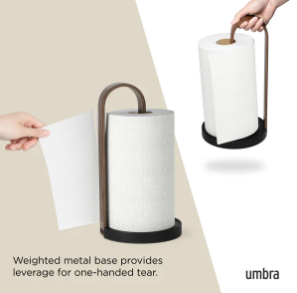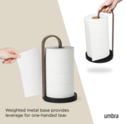 Denne elegante køkkenrulleholder fra Umbra i Bellwood serien kombinerer funktionalitet og et eksklusivt design. Basen er lavet af vægtet stål, som gør at den står fast på bordet, når man taget et stykke køkkenrulle af. Den er nemt at udskifte, da man bare skal løfte op i toppen af træstykket, og så sætte køkkenrullen ind. Den kan holde både en alm. størrelse køkkenrulle, men også de større ruller.