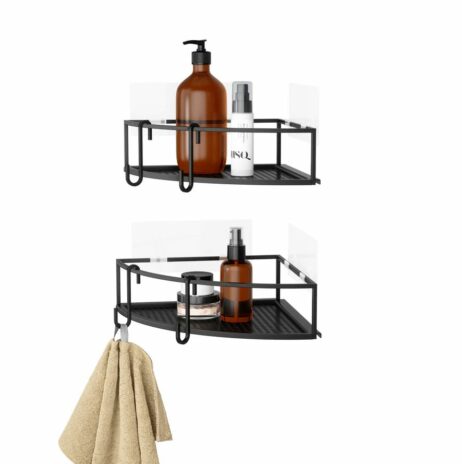 Dette sæt består af to hjørnehylder, der kombinerer et enkelt, firkantet trådramme-design med en mat sort finish, ideel til badeværelser og bruseområder. Fremstillet i 100% rustfrit stål sikrer hylderne lang holdbarhed og modstandsdygtighed mod korrosion i fugtige miljøer. Med dimensioner på 32 cm i bredden og 4 cm i højden tilbyder de kompakt, men rummelig opbevaringsplads til sæber, shampoo og andre badeprodukter. Den lette vægt på 0,8 kg gør dem nemme at montere, mens den matte sorte overflade med miljøvenlig coating sikrer et stilrent, tidløst udtryk, der passer til både klassiske og moderne indretninger.