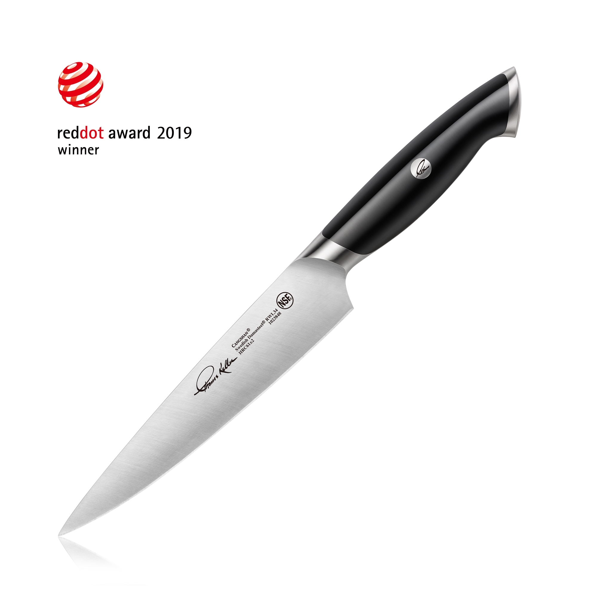 Kniven er resultatet af et samarbejde med Michelin-kokken Thomas Keller og håndslebet for skarphed direkte fra æsken. Den seks-stadier varmebehandling styrker stålets holdbarhed, mens den polerede klinge modvirker fastsiddende mad og letter rengøringen. Leveres i en elegant valnøddetræsæske med kunstnerisk indgravering, der beskytter kniven og gør den til en perfekt gave. Designet, som vandt 2019 RED DOT Design Award, kombinerer æstetik og funktionalitet og henvender sig til både professionelle og ambitiøse madentusiaster, der kræver præcision, holdbarhed og stilrent køkkenudstyr.