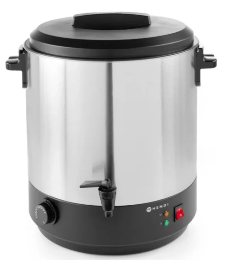 Denne Hendi varmebeholder i stål er en professionel løsning til opvarmning og servering af varme drikke som gløgg, kaffe, te og varmt vand. Med sin store kapacitet og driftssikre konstruktion er den ideel til restauranter, caféer, catering og events, hvor der er behov for stabil og kontinuerlig servering.